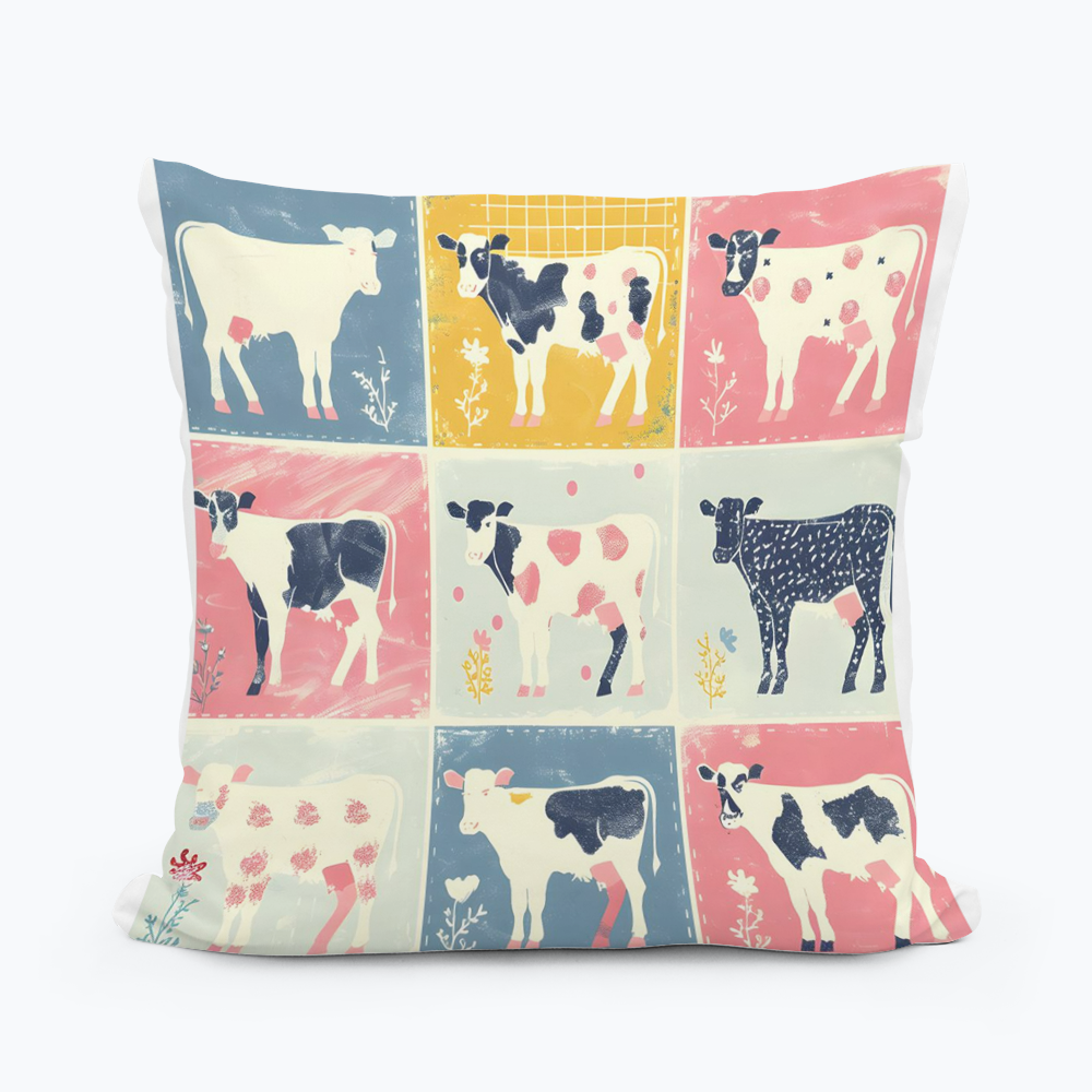 Retro Cow Farm Square Pillow