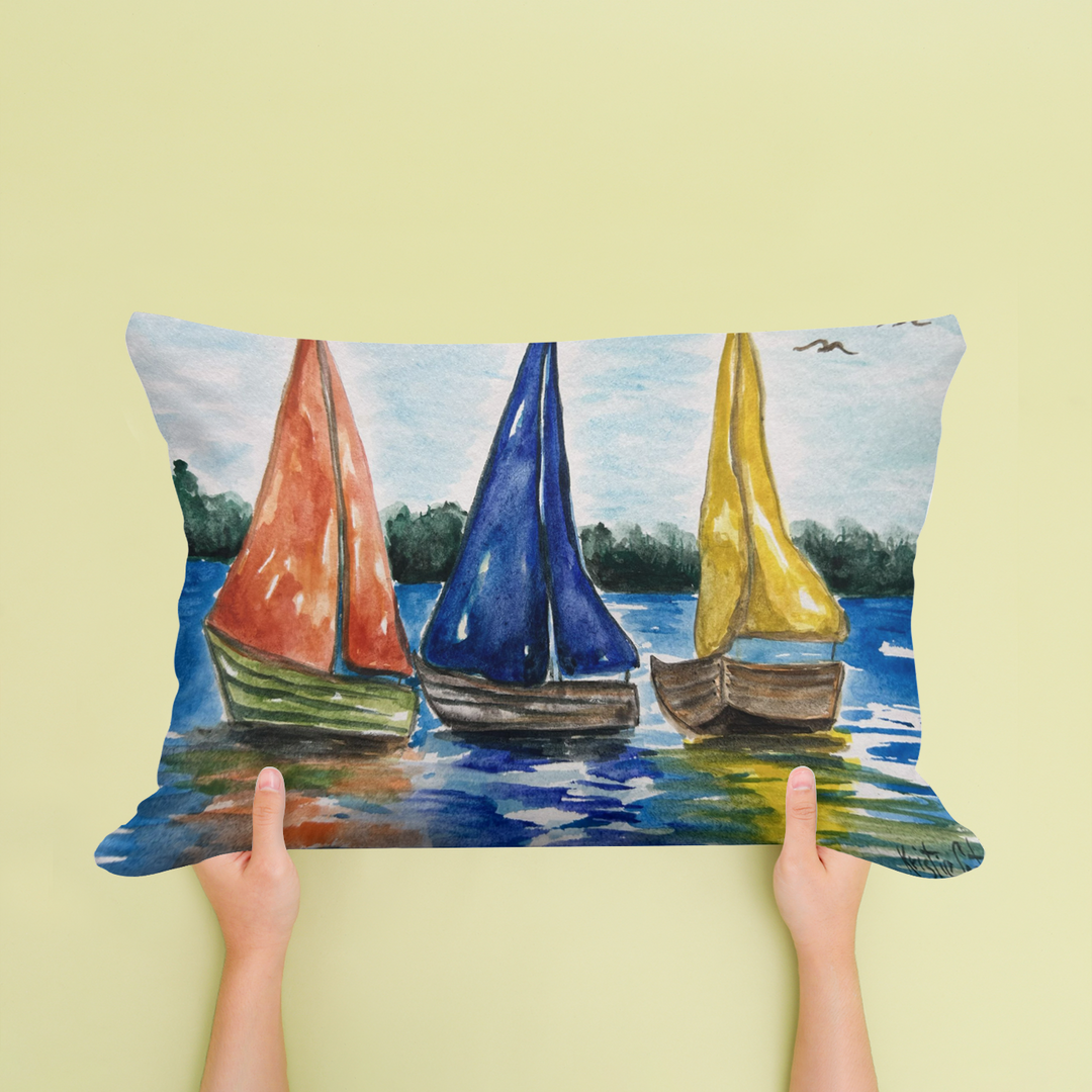 KRISTIE SAILBOATS LUMBAR PILLOW